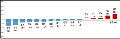 그러나 대구(16.5%), 경북(4.5%)은 반대로 갔다. 교통사고 사망자 증가율이 전국에서 광주(25.0%)에 이어 2, 3위였다. 대구는 전년 79명에서 92명으로, 경북은 292명에서 305명으로 각각 사망자수가 13명 늘었다. 이에 따라 지방자치단체, 지방경찰관서 및 교통안전 유관기관 등의 집중적인 안전 강화 노력이 시급한 것으로 나타났다.