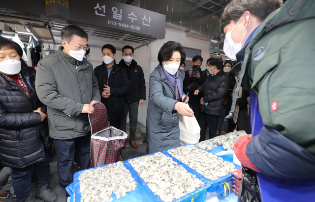 10일 인천 소래포구를 방문한 문재인 대통령과 김정숙 여사를 언급한 조 구청장은 "시민들에게는 이번 설 준비는 온라인 전통시장에서 하라고 권장하더니, 앞뒤가 맞지 않는 행정"이라고 지적했다.