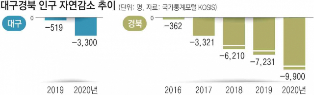 지난해 사상 처음으로 대한민국 사망자 수가 출생아 수를 넘어서는 인구 '데드크로스(Dead Cross)가 발생했다. 이런 가운데 대구경북 인구 감소는 전국에서 가장 심각한 수준으로 나타났다.