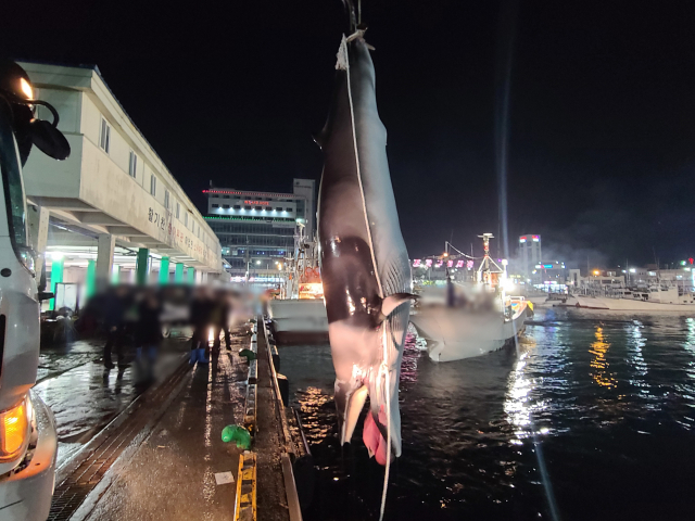 당시 어선 선장은 배 부위에 포획 흔적이 없어 해경과 어선안전조업국에 신고한 뒤 고래를 구룡포항으로 끌고 왔다.