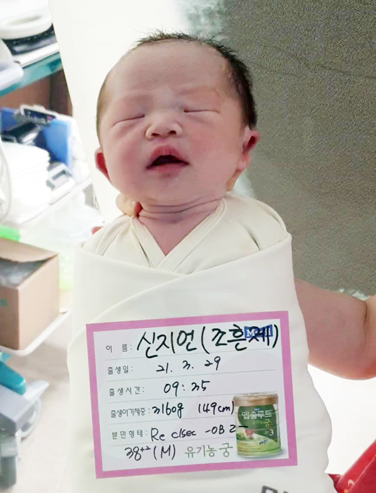 ▶김아연(39)·임석효(35·경남 거창군 거창읍) 부부 둘째 아들 금쪽이(3.4㎏) 3월 29일 출생. "금쪽아, 건강하게만 자라다오! 사랑해♡"
