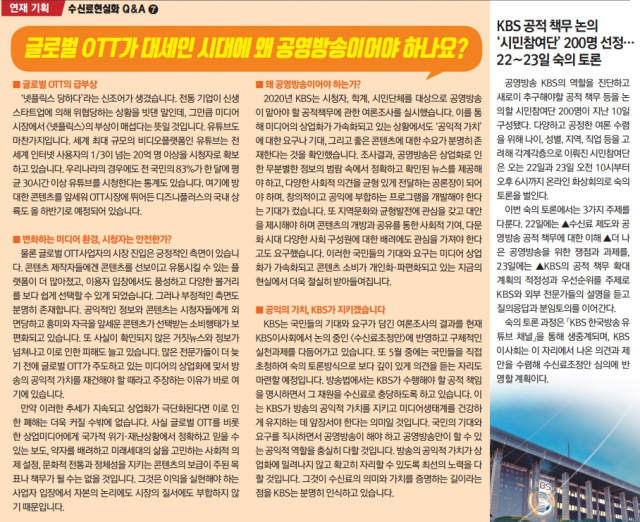 ▶KBS는 5월 17일 자 사보를 통해 "KBS 공적 책무 논의를 위한 시민참여단 200명을 선정했다"며 "오는 22, 23일 숙의 토론을 진행한다"고 밝혔다.