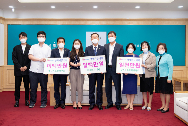 경북 구미시유치원연합회(1천만원)와 재구미포항향우회(200만원), 주식회사 기린(100만원)은 8일 지역 교육발전과 인재 육성을 위해 (재)구미시장학재단에 장학금 총 1천300만원을 전달했다.