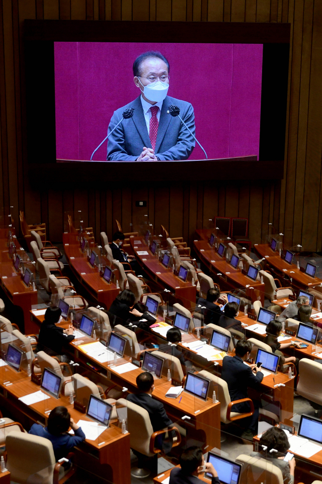 윤재옥 국민의힘 의원(대구 달서구을)이 31일 열린 본회의에서 제21대 국회 전반기 정무위원장에 당선됐다.