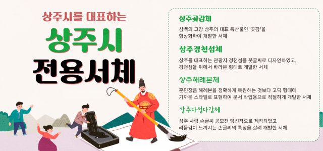 상주시 전용서체는 상주곶감체, 상주경천섬체, 상주해례본체, 상주다정다감체 등 네 가지다.