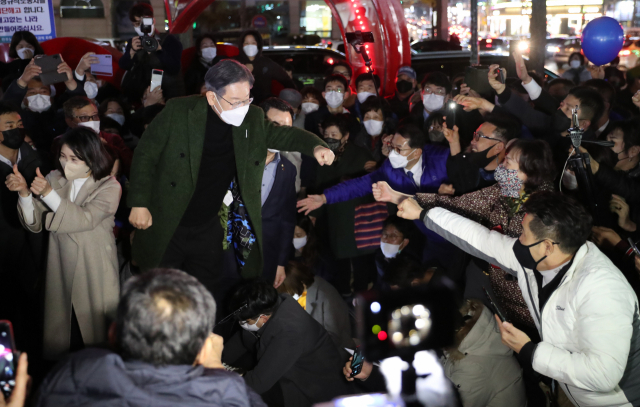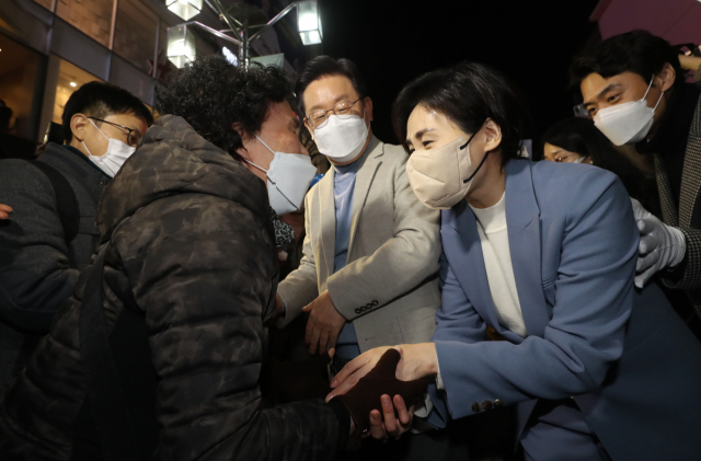 이재명 더불어민주당 대선 후보와 부인 김혜경 씨가 10일 대구 동성로를 찾은 가운데, 두 사람이 손을 꼭 잡은 채 붙어 다니며 시민들의 시선 및 언론 카메라에 함께 잡힌 까닭에, 그들의 의상 역시 시선을 모았다.