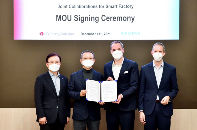LG에너지솔루션은 독일 지멘스와 '제조 지능화' 구축을 위한 업무협약을 체결했다고 14일 밝혔다.
