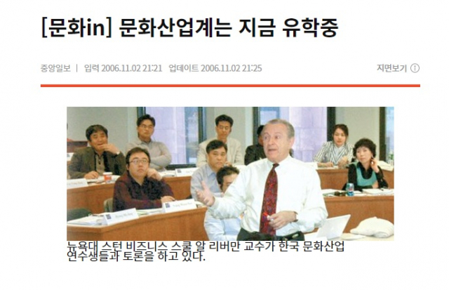 해당 기사는 국내 문화산업계 인사들의 해외 연수 코스를 보도한 기사다. 이 기사에는 미국 뉴욕대(NYU) 스턴 비즈니스 스쿨에서 수업을 듣던 김씨의 모습이 등장한다.
