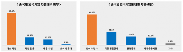 중국에 진출한 기업 10곳 중 8곳(81.7%)은 중국 기업에 비해 차별 대우를 받고 있다고 응답했다.