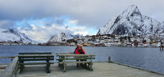 여름 풍광에 반해 눈 속을 뚫고 찾아간 레이네(Reine)마을을 여행자는 '세상에서 가장 아름다운 마을'이라고 부르고 싶다. 그 아름다운 겨울 레이네를 조금이라도 빨리 마주하고 싶어 레크네스에서 첫 버스를 타고 로포텐제도의 가장 서쪽에 있는 모스케네스섬으로 들어왔다. 레이네로 들어가는 길목에 서니 하얗게 옷을 갈아입은 레이네의 풍경이 드디어 눈앞에 나타났다.