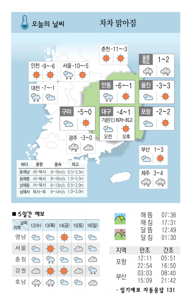 [날씨] 1월 11일(화) "차차 맑아짐"