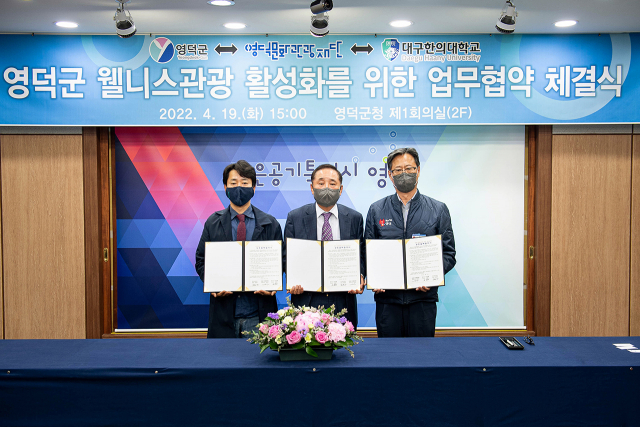 대구한의대(총장 변창훈)는 19일 영덕군청에서 영덕군, (재)영덕문화관광재단과 상호 발전을 위한 업무협약을 체결했다.