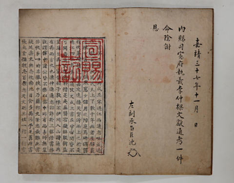 한국국학진흥원은 지난해 8월 130여년 만에 '입원록'과 '원록등본'을 원래 주인인 소수서원으로 돌려준데 이어서 다음 달 2일에는 '문헌통고'(文獻通考)를 500년 만에 주인을 찾아 농암종가로 돌려보낸다.