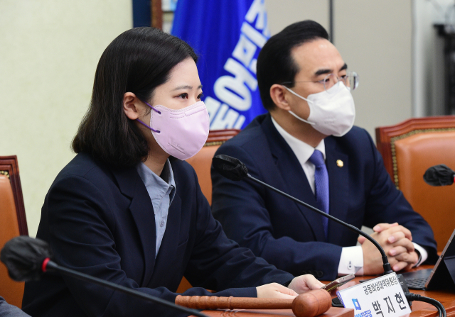 박지현 더불어민주당 공동비상대책위원장이 최강욱 의원이 온라인 회의 중 성희롱 발언을 했다는 논란에 대해 "당내 조사 결과를 보겠다"고 말했다.