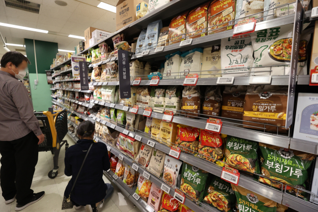 세계 밀 생산량 2위인 인도가 식량 안보를 이유로 밀 수출을 전격 금지함에 따라 국내 식품 물가 부담도 커질 것으로 예상된다. 사진은 15일 대형마트에서 판매 중인 밀가루. 연합뉴스