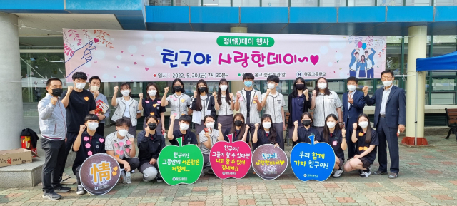 20일 형곡고에 따르면 학생들은 등교 시간에 '친구야 사랑한데이' '끝까지 함께하며 힘내자' 등 마음을 담은 손편지를 주고받으며 각자의 정을 초코파이에 담아 나눈다.