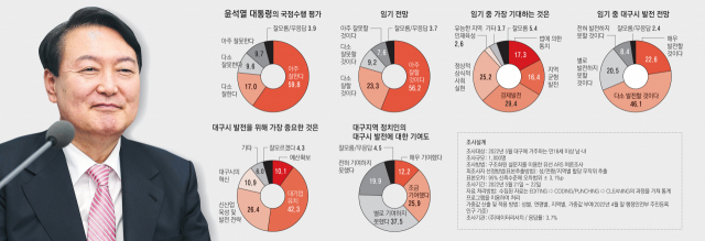 대구시민 10명 중 7명은 윤석열 대통령 임기 중 대구 발전을 기대하는 것으로 나타났다. 대구 발전을 위한 방안으로는 '대기업 유치'가 최다 지지를 받았다.
