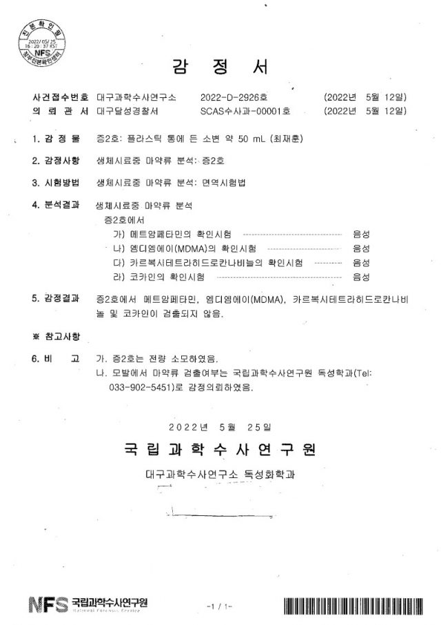이와 함께 최재훈 후보는 국립과학수사연구원 검사 결과도 공개하고 "소변검사와 모발검사 모두 음성으로 판명났다"고 했다.