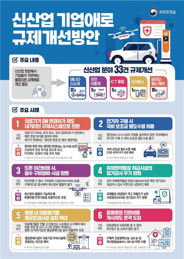 국무조정실 관계자는 "앞으로 신산업 분야 투자에 걸림돌로 작용하는 규제를 최단시간 내에 해결하기 위해 노력하겠다"고 했다.