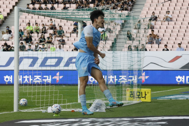 지난 25일 전주월드컵경기장에서 열린 '하나원큐 K리그1 2022' 18라운드 전북현대와의 경기에서 대구FC 고재현이 골을 넣고 기뻐하고 있다. 대구FC 제공
