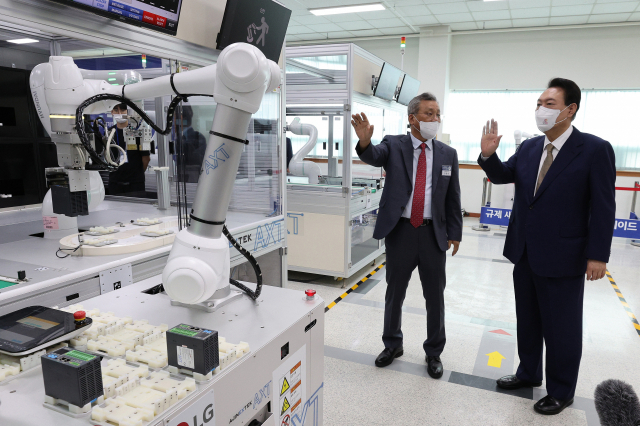 윤 대통령은 이날 오전 달서구 성서산업단지 내 로봇기업 ㈜아진엑스텍에서 열린 '제1차 규제혁신전략회의'를 주재하면서 "정부의 중요한 역할은 민간이 더 자유롭게 투자하고 뛸 수 있도록 방해되는 요소들 제거하는 것이고 그 핵심이 규제혁신"이라고 강조했다.