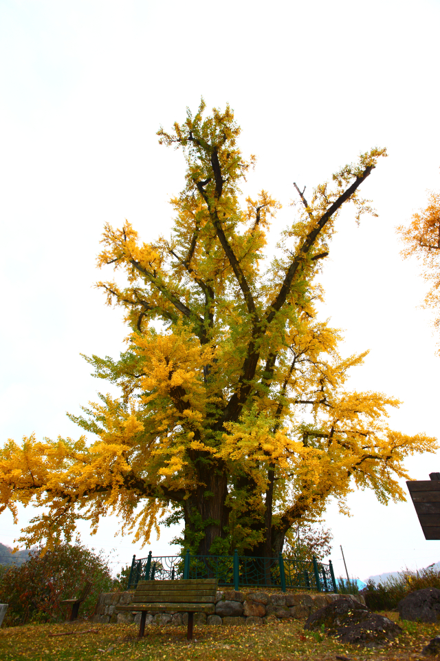 10월 하순은 온통 황금빛 은행나무의 고운 자태가 절정이다. 나무 아래엔 은행 열매들이 떨어지고 부채꼴 은행잎은 샛노란 수를 놓는다. 도심과 지방도의 가로변, 관공서의 뜰, 조용한 시골 동네를 말없이 지키고 있는 크고 작은 은행나무들을 어렵잖게 볼 수 있다. 대기오염에 강하고 환경 적응력이 매우 강하기 때문이다.