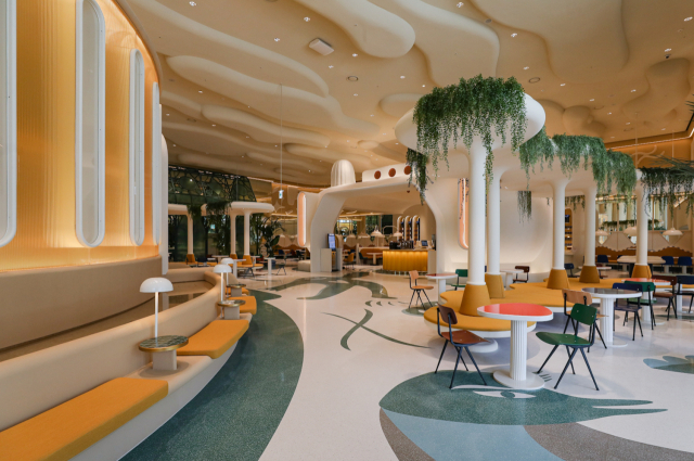 특히 9층은 한 층 전체를 복합 문화예술 광장으로 꾸몄다. 스페인을 대표하는 산업 디자이너 '하이메 아욘'과 협업해 4천565㎡(1천380평) 규모로 조성한 '더 포럼 by 하이메 아욘'이다. 하이메 아욘이 직접 디자인한 '카페 워킹컵'과 실내 광장 '콜로세움', 실외 조각공원 '게이츠 가든', 온실형 휴게공간 '그린하우스' 등으로 구성했다.