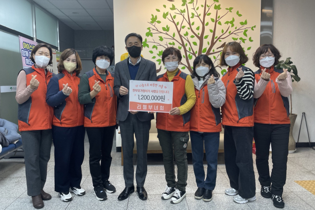 경북 영주시 리첼아파트부녀회는 지난 16일 가흥동행정복지센터를 방문, 리첼사랑나눔 행복더하기 일일찻집 수익금 120만원을 '희망 2023 나눔' 이웃돕기 성금으로 기탁했다.