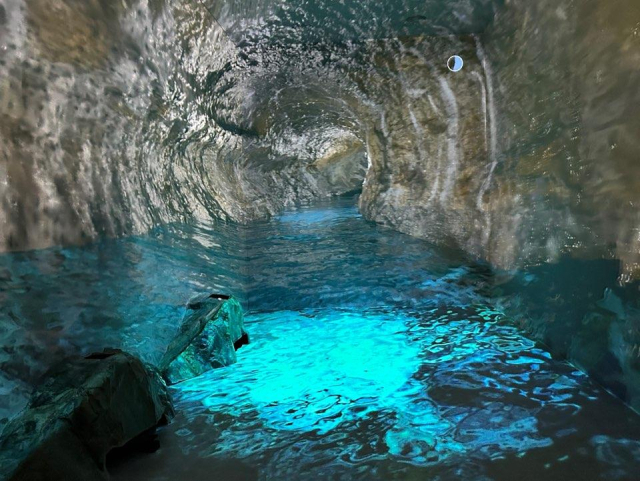 용천동굴 체험실 옆 공간의 360도 전면 영상도 관람객의 시선을 사로잡았다.