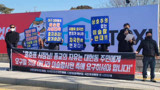대현동 이슬람사원 건립반대 비대위 소속인 김모 씨는 "이슬람 사원뿐만 아니라 골목길 안의 다중이용시설은 용납할 수 없단 게 우리 입장"이라고 강경한 목소리를 냈다.