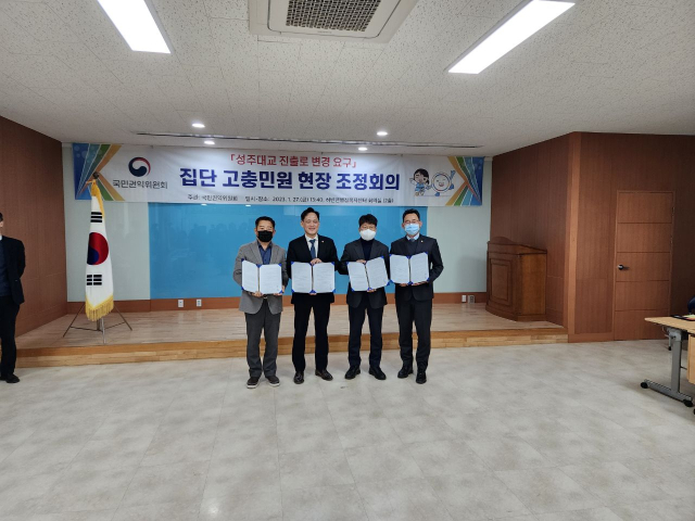 국민권익위는 이날 달성군 하빈면행정복지센터에서 김태규 권익위 부위원장 주재로 '집단민원 현장조정회의'를 열고, 성주대교 인근 진출로 일부 구간을 확장하기로 합의했다.