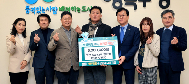 고산느티나무장학회(회장 장경호)가 지난 8일 미래인재 육성과 지역 교육 발전을 위해 장학금 5백만 원을 (재)수성미래교육재단(구.수성인재육성장학재단)에 기탁했다.