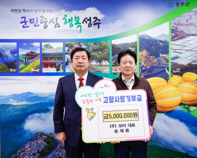 송재동 ㈜모아 대표는 고향발전을 위해 성주군에 고향사랑기부금 500만원을 전달했다고 26일 밝혔다.