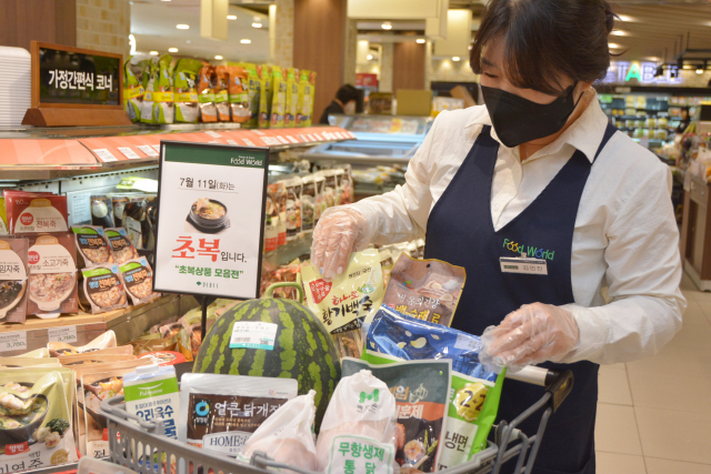 간편하게 초복을 즐길 수 있는 HMR(가정 간편식) 삼계탕 행사도 풍성하게 준비했다. 오뚜기·올반 삼계탕을 브랜드 상관없이 2+1에, 피코크 삼계탕 전품목을 20% 할인한 7천984원에 판매한다.