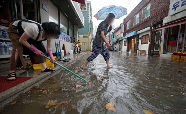 [포토뉴스] 장맛비에 배수구 뚫는 시민들