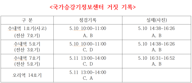 이에 대해 감독기관인 코레일은 점검여부를 증빙할 CCTV 영상은 2주 동안만 보관하기 때문에 추후 사실관계 확인은 어렵다며 실제 점검 인증사진을 카카오톡 메시지(단체방)를 통해 제출받고 있다고 해명했다. 그러면서 승강기 점검 체크리스트에 코레일 직원 입회 항목을 신설하는 개선방안을 마련했다.