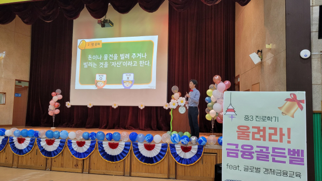 북구 관음동에 있는 관음중학교는 지난 27일 고등학교 진학을 앞둔 3학년 학생들을 대상으로 '금융 리터러시'를 향상시키고자 경제금융 골든벨을 개최했다.