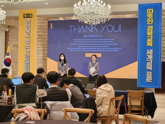 본선대회는 지난 16일 안동 세영리첼호텔에서 개최돼 현장발표형식으로 열렸다. 주말에 열린 행사였지만 경북 여러 지역에서 모인 학생과 교사를 응원학교자 각 학교 교장과 교감 선생님이 직접 행사장을 찾아 응원하는 훈훈한 모습도 연출됐다.