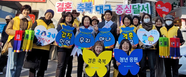 대구 달서구(구청장 이태훈)는 지난 7일 달서시장에서 달서구결혼친화서포터즈단(단장 김명자)과 함께 결혼문화 확산을 위한 캠페인을 전개했다.