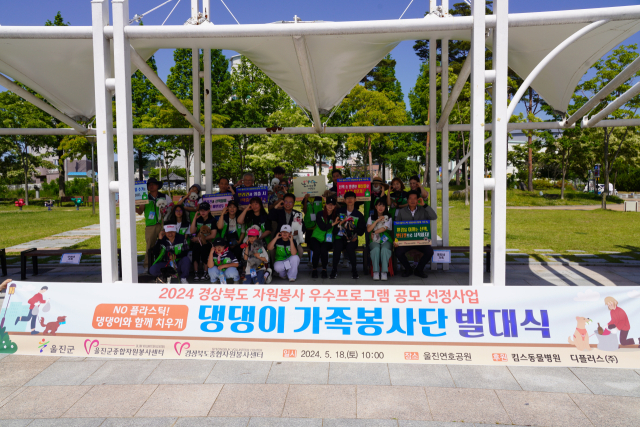 2024 경북도 자원봉사 우수프로그램으로 선정된 'NO 플라스틱! 댕댕이와 함께 치우개' 프로그램 시작을 알리는 발대식에는 13가구의 댕댕이 가족봉사단이 참석했다.