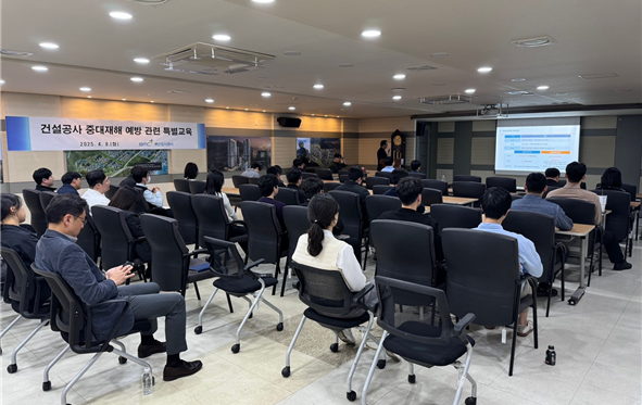 이번 교육은 부산 기장군 리조트 공사현장 화재사고, 경기도 평택 화양지구 공동주택 신축공사 추락사고와 같이 최근 건설공사 현장에서 빈번히 발생하고 있는 중대재해에 선제적으로 대응하고, 직원들의 안전관리 역량을 강화하기 위해 마련됐다.
