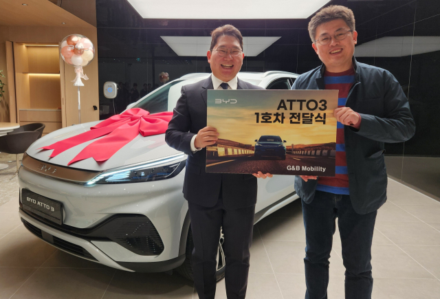 이날 BYD의 대구경북 공식 딜러사인 지엔비 모빌리티는 대구 수성구에 있는 BYD Auto 대구전시장에서 아토 3 '1호차' 인도식을 진행했다.