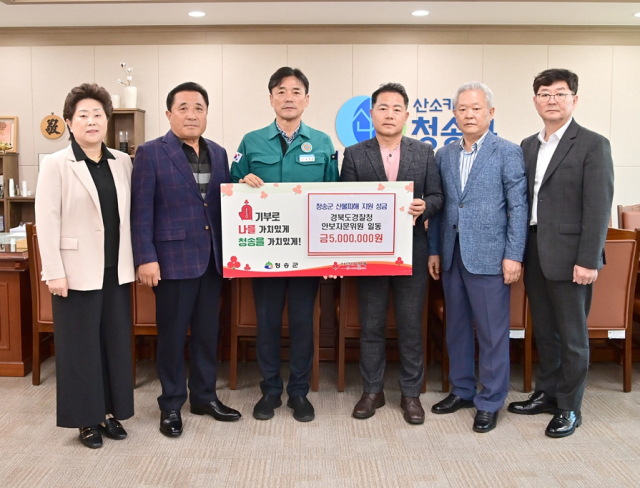 경북경찰청 안보자문협의회(회장 이지우 신우신 대표)는 최근 청송군청을 방문, 윤경희 청송군수에게 산불 피해를 입은 지역 주민들을 도와달라며 성금 500만원을 전달했다. 이 성금은 산불 피해가 집중된 청송지역 주민들을 대상으로 복구 지원 및 생계 안정에 사용될 예정이다.