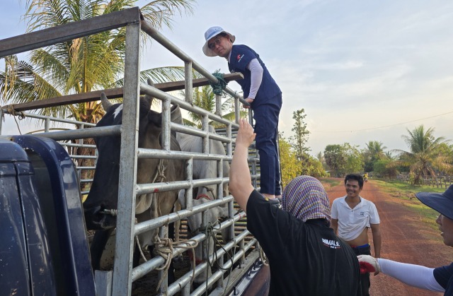 우리가 동물의료 봉사를 하는 동안 캄보디아 농업축산부 소속 수의사와 공무원이 동반해주었다. 덕분에 마을 이장격인 주민들의 도움도 원활해졌고 현지인과도 원할한 통역이 가능해졌다.대부분의 농가에서 소를 키우고 있었다. 농가의 제일 중요한 소득원이지만 관리는 방목 수준이었다. 소들이 평화롭게 들판을 거닐며 풀을 뜯는 모습이 목가적인 풍경으로 비쳐지기도 하지만 속 사정은 전혀 그렇지 않다.