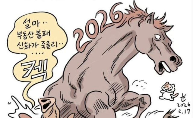 이재명 대통령이 17일 자신의 인스타그램에 '설마가 부동산 잡는 해'라는 제목의 만화를 공유했다. 이 대통령이 연일 강조하고 있는 부동산 불패 신화 근절 의지를 재차 피력한 것이 아니냐는 의견이 나온다.이 대통령은 이날 오후 관련 만화를 올리고 "재미 있네요"라고 적었다. 이 만화는 2026년의 상징인 붉은 말이 '땅투기'라고 적힌 돼지를 발로 밟는 모습을 담고 있다. 돼지 옆에는 "설마...부동산 불패 신화가 죽을 리...켁"이라는 말풍선이 달렸다.이 만화를 그린 박순찬 화백은 자신의 '장도리 사이트'에 그림을 올리며 "2026년 병오년(丙午年)은 '붉은 말의 해'"라며 "부동산 투기와의 전쟁을 선포한 이재명 정부는 오로지 시민들의 개혁에 대한 열망을 믿고 달려나가길 기대한다"고 썼다.앞서 이날 이 대통령은 본인의 엑스 계정에 글을 올리고 "제가 살아온 어둡고 헝클어진 세상을 누구에게도 물려주지 않고, 모든 사람이 불의와 부당함에 고통받지 않으며, 누구도 부당하게 남의 것을 빼앗지 못하는 제대로 된 세상을 만드는 것이 저의 간절한 소원"이라고 말했다.그는 "사랑하는 국민 여러분, 새해에 모두 소원성취하기를 바란다. 저에게도 소원이 있었다"고 했다.특히 "저는 대통령이 되려고 된 것이 아니다. 대통령의 권한으로 하고 싶은 일이 있었기 때문"이라며 "20년 전 성남시장에 출마하면서도 '권력이 아닌 일할 수 있는 권한이 필요합니다'라고 엎드려 절하며 호소했다"고 떠올렸다.이어 "이제 대한민국을 바꿀 기회가 왔다. 오직 하나의 소원을 안고 무수한 죽음의 고개를 넘으며 여기까지 왔는데, 그 절실한 일을 왜 하지 않겠느냐"며 "국민의 은혜로 소원을 이뤘으니 이제 전력 질주만 남았다"고 강조했다.이 대통령은 "부동산 공화국을 극복하는 것이든, 안전하고 평화로운 나라를 만드는 것이든, 공정하고 합리적인 세상을 만드는 것이든, 성장·발전하는 나라를 만드는 것이든 두려움을 모두 떨쳐내고 촌음까지 아껴 사력을 다하겠다"고 약속했다.그러면서 "존경하는 국민 여러분, 서로 굳게 손잡고 모두가 함께 행복한 나라를 함께 만들어 가시지요. 고맙습니다. 사랑합니다"라고 글을 맺었다.