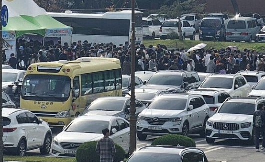 〈strong〉"아침도 안 먹고 출발했는데 12시까지 맛도 못봤네요."〈/strong〉〈strong〉"철저하게 준비했다고 하는데도 방문객이 많으면 어쩔 수 없네."〈/strong〉경북 김천시가 주최한 '2025 김천김밥축제' 첫날 8만명의 인파가 몰리면서 성황을 이뤘다.올해로 2회째를 맞은 이 축제는 25~26일 직지문화공원과 사명대사공원 일대에서 개막했으며, 하루 만에 약 8만 명의 방문객이 다녀간 것으로 김천시는 추산했다.이날 현장은 문자 그대로 '김밥 대란'이었다. SNS와 커뮤니티에는 "셔틀버스 기다리는데 1시간, 타고 가는데 1시간"이라며 "부스마다 김밥을 사려는 줄이 50명 넘게 늘어서 있었다"는 체험담이 잇따랐다. 김밥을 손에 넣기 위해 줄 선 사람들은 뙤약볕에도 자리를 지켰고, 일부는 돗자리를 펴고 대기하며 축제를 즐겼다.김천시는 지난해 첫 축제에서 예상 방문객(1만 명)보다 10배 많은 10만명의 인원이 몰린 점을 고려해, 올해는 김밥 10만명 분을 준비하고 판매 부스를 32개로 확대했다. 셔틀버스를 5배로 늘렸다.그러나 올해도 역시 25일 오전에만 5만명이 방문하는 등 예상 이상 인파가 몰리며 '김밥 품귀' 현상이 이어졌다. 일부 부스는 정오 전에 김밥이 모두 매진되며 판매를 조기 중단했다. 일부 부스에서는 1인당 김밥 구매 수량을 제한하는 조치까지 취했지만 김밥을 사지 못하는 관광객도 속출했다. 김밥 물량은 오후 5시쯤 조기 소진된 것으로 알려졌다.그럼에도 김밥의 품질에 대한 호평은 끊이지 않았다. 속이 꽉찬 김밥 사진이 온라인 커뮤니티 등에 올라오자 "김밥 비주얼이 미쳤다" "축제 음식이 이렇게 실한거 처음 본다" "사람이 많지만 김밥이 그만큼 맛있을 것 같아서 부럽다" "김밥 사진 보니 내년에는 꼭 가고 싶다" 등의 반응이 나왔다.볼거리도 풍성했다. 지역 식품업체 대정과 협업한 '김밥 공장'에서는 오픈 키친에서 시간당 1000줄 이상 김밥이 생산되는 과정을 직접 볼 수 있어 방문객의 눈길을 끌었다. 컨베이어 벨트에 올려진 밥에 직원들이 야채 등 속재료를 차례로 빠르게 얹으면 마지막에 밥이 알아서 둥글게 말려져 나오는데, 이렇게 속이 꽉찬 밥에 김을 씌우는 방식이었다.이번 축제에서는 지역 대표 김밥뿐 아니라 전국 각지의 이색 김밥과 해외형 K-김밥이 한자리에 모였다. 김천김밥쿡킹대회에서 우승한 '호두마요제육김밥', 방송에서 화제를 모았던 '남보라 김밥', 냉동으로 즐기는 K푸드형 김밥 등이 대표적이다.최근 김천시 수돗물에서 깔따구로 추정되는 유충이 발견되자 시는 즉시 대책을 마련해 김밥축제 전 구역에서 수돗물 대신 생수만 사용하도록 조치했다.