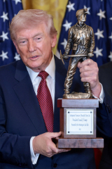 도널드 트럼프 미국 대통령이 11일(현지시간) 자신의 진열장에 "아름답고 깨끗한 석탄의 명실상부한 챔피언"이라는 이름의 트로피를 추가했다. 석탄 광부가 곡괭이를 든 모습의 이 트로피는 석탄발전업체들이 모...
