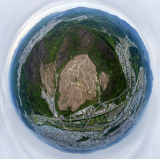 '지구의 날'인 22일 드론으로 촬영한 대구 북구 함지산 일대 산불 피해지. 초록으로 물든 산자락 사이로 가운데 넓게 비어 있는 피해목 제거 구간이 깊은 상처처럼 보인다. 이는 폭염과 집중호우, 가뭄, 산불로 ...