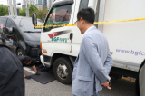 '에어건 분사' 가해 사업주, 피의자 신분 출석…"실수로 쏴, 피해자에 미안"