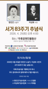 현진건기념사업회와 이상화기념사업회는 현진건과 이상화를 기리는 제83주기 합동추념식을 오는 25일(토) 오후 4시 두류공원 인물동산에서 개최한다. 현진건과 이상화는 대구 계산동에서 함께 자란 동네 친구로 1...